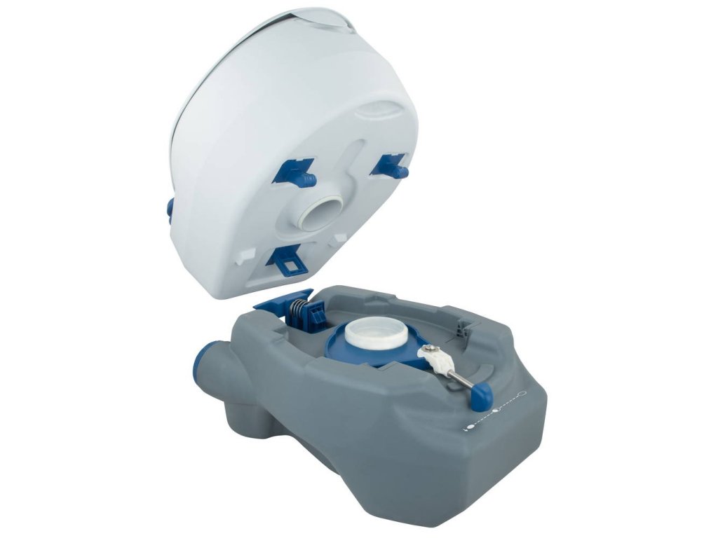 Chemický záchod Campingaz 20L – přenosné WC na chatu a pro seniory je přenosná toaleta se dvěma oddělenými nádržemi: horní je určená pro vodu na splachování a spodní pro odpad. Je to praktické řešení pro místa, kde není k dispozici běžná toaleta a standardní napojení na odpad.