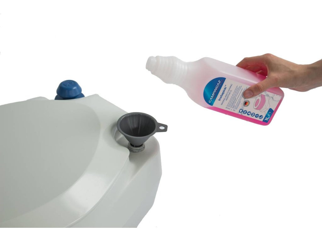 - Dezinfekční prostředek na chemické WC Campingaz Instablue Extra 1 l – na rozklad a dezinfekci odpadu.
