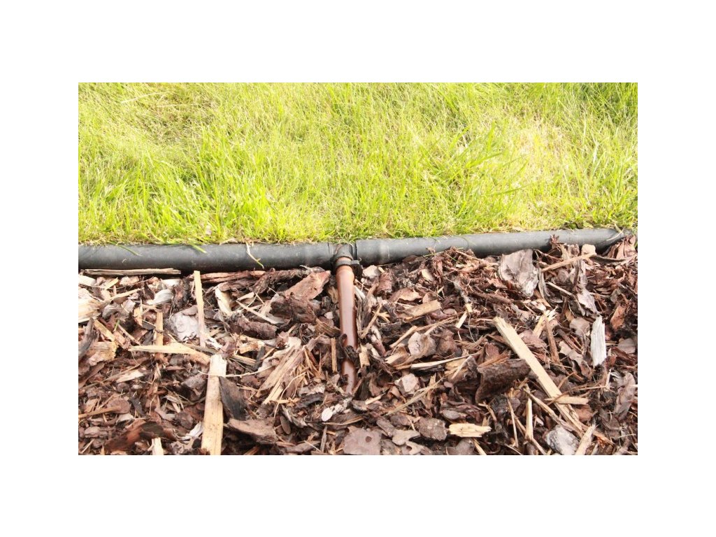 Kapkovací hadici připojíte na obrubník specálním "T" konektorem. Konektor má dva konce o průměru 25 mm ( oba konce zasunete do obrubníku) a jeden konec o průměru 16 mm ( na tento konec napojíte kapkovací hadici)