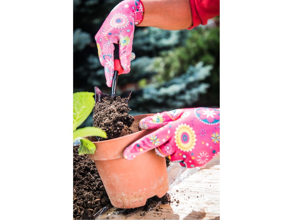 Pracovní rukavice zahradní nylonové polomáčené v nitrilu, velikost 7 - růžové