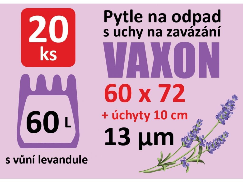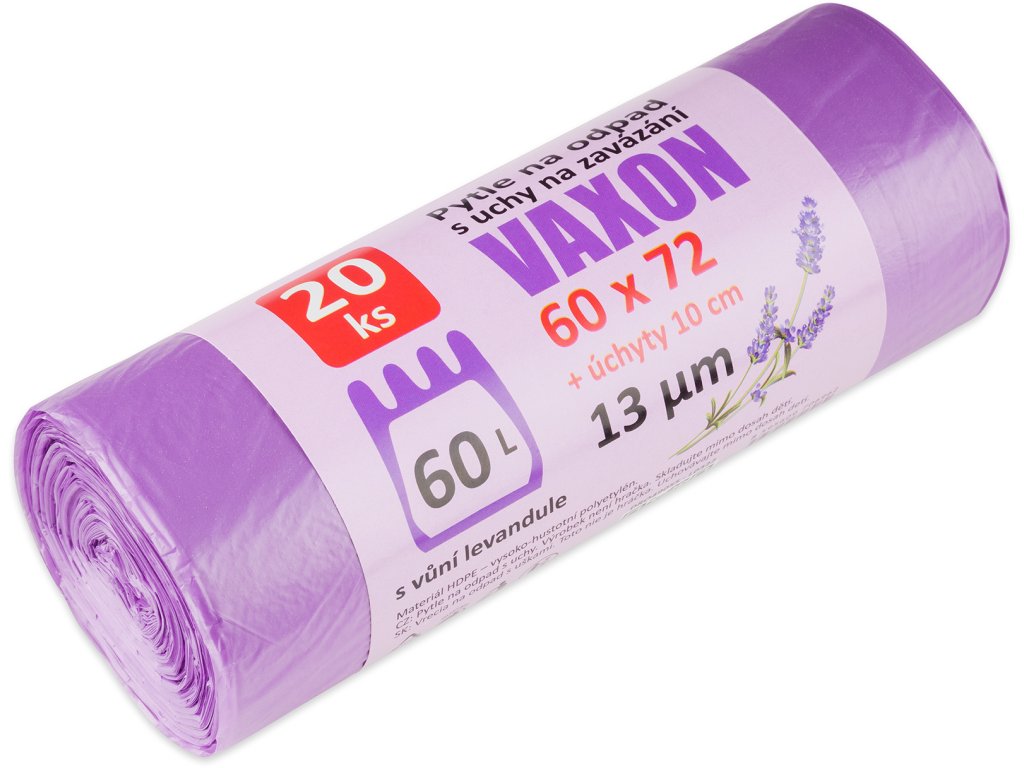 🗑️ Pytle na odpadky Vaxon 60 l – 20 ks, 13 µm, s uchy, fialové s vůní levandule