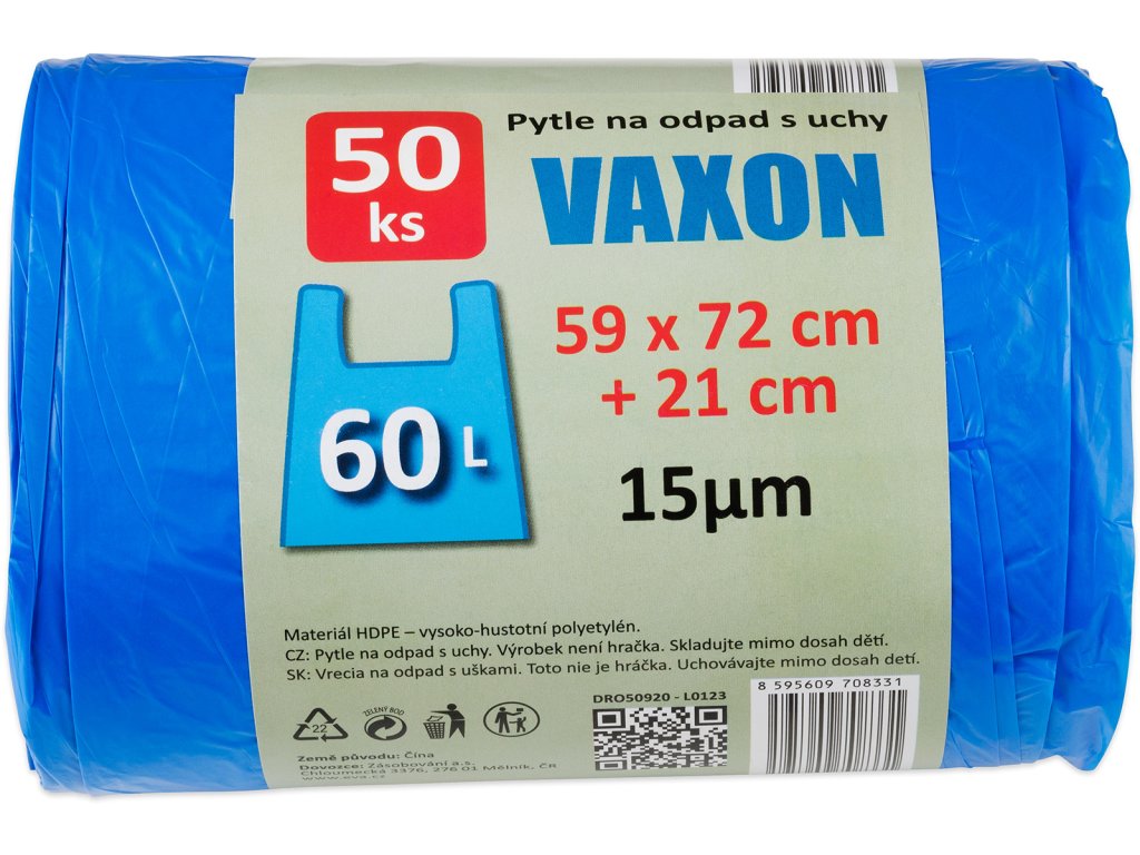 Pytle na odpadky 60 l Vaxon – modré odpadkové pytle s uchy (50 ks)
