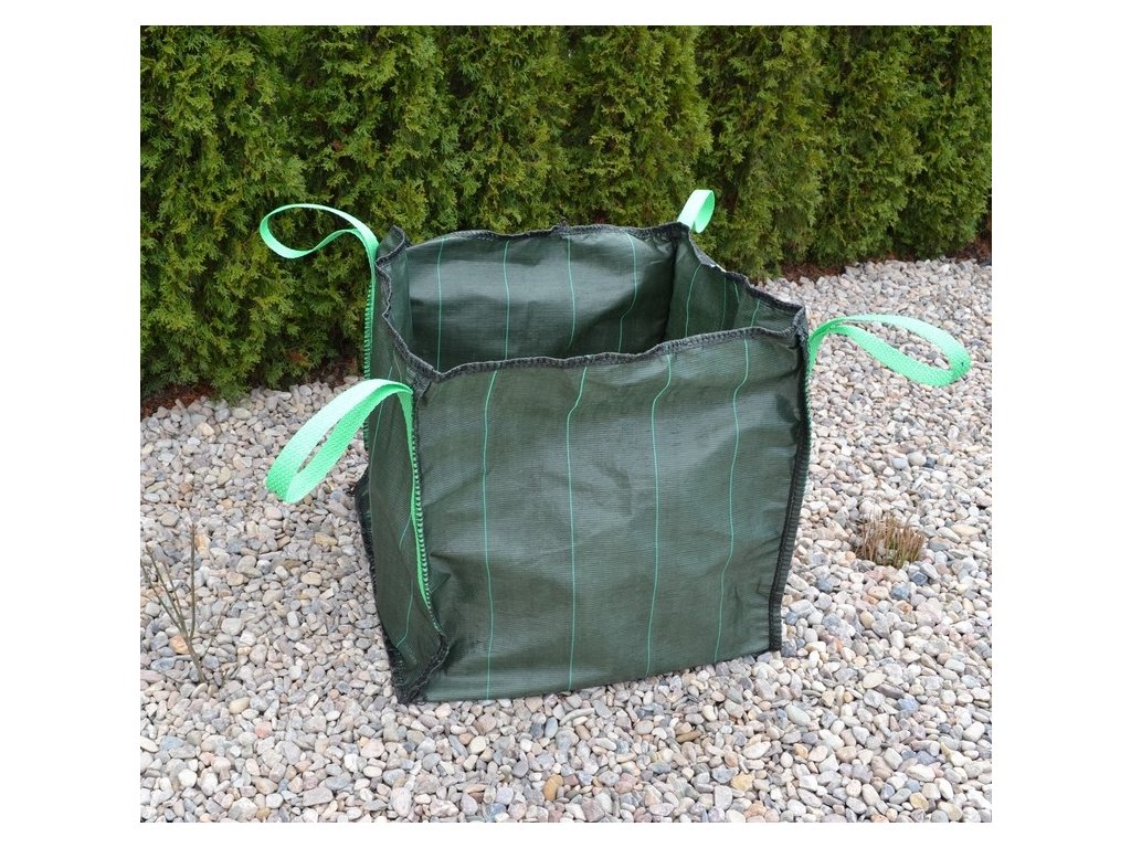 Vak, pytel na listí a zahradní odpad 70 x 70 x 70 cm, 343L – zelený je robustní zahradní pytel určený pro každodenní práci na zahradě. S objemem 343 litrů pojme velké množství zahradního odpadu – od čerstvě posečené trávy, přes shrabané listí, až po větve, plevel nebo zbytky rostlin po sklizni. Tento vak na zahradní odpad je vyroben z kvalitní tkané agrotextilie s vysokou gramáží 130 g/m², což zajišťuje jeho dlouhou životnost, vysokou pevnost a odolnost vůči protržení i vlhkosti.