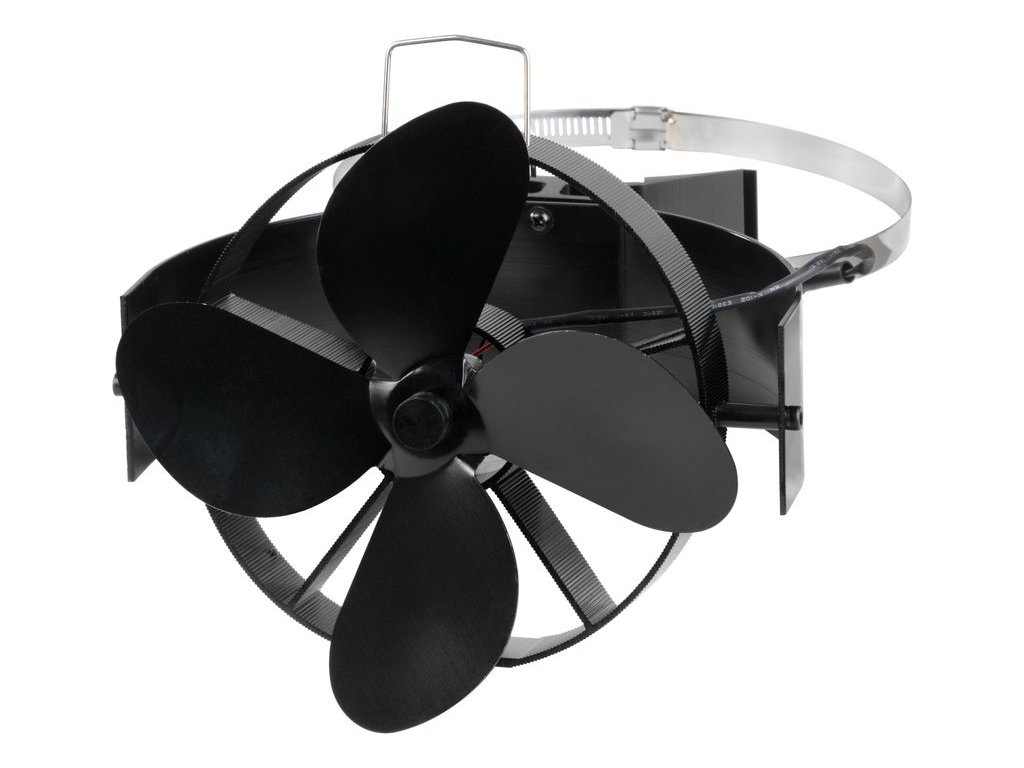 Ventilátor na kouřovod magnetický – teplem poháněný krbový ventilátor je termoelektrický ventilátor pro lepší cirkulaci a rozptyl tepla od krbu či kamen. Upevňuje se na kouřovod pomocí magnetu a stahovací spony (do Ø 160 mm) a funguje bez elektřiny – po zahřátí se automaticky roztočí (cca od 50 °C) a po vychladnutí se zastaví.